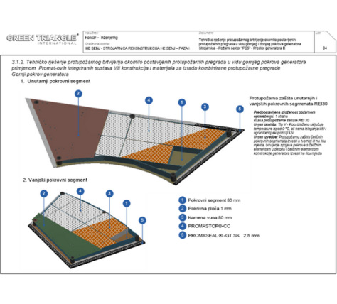 SPECIJALNA BRTVLJENJATehničko rješenje i zvedba sustava specijalnih brtvljenja donjeg i gornjeg pokrova generatora, prodora strujnih mjernih transformatora i jednofaznih oklopljenih vodova kroz zaštitnu pregradu generatora.